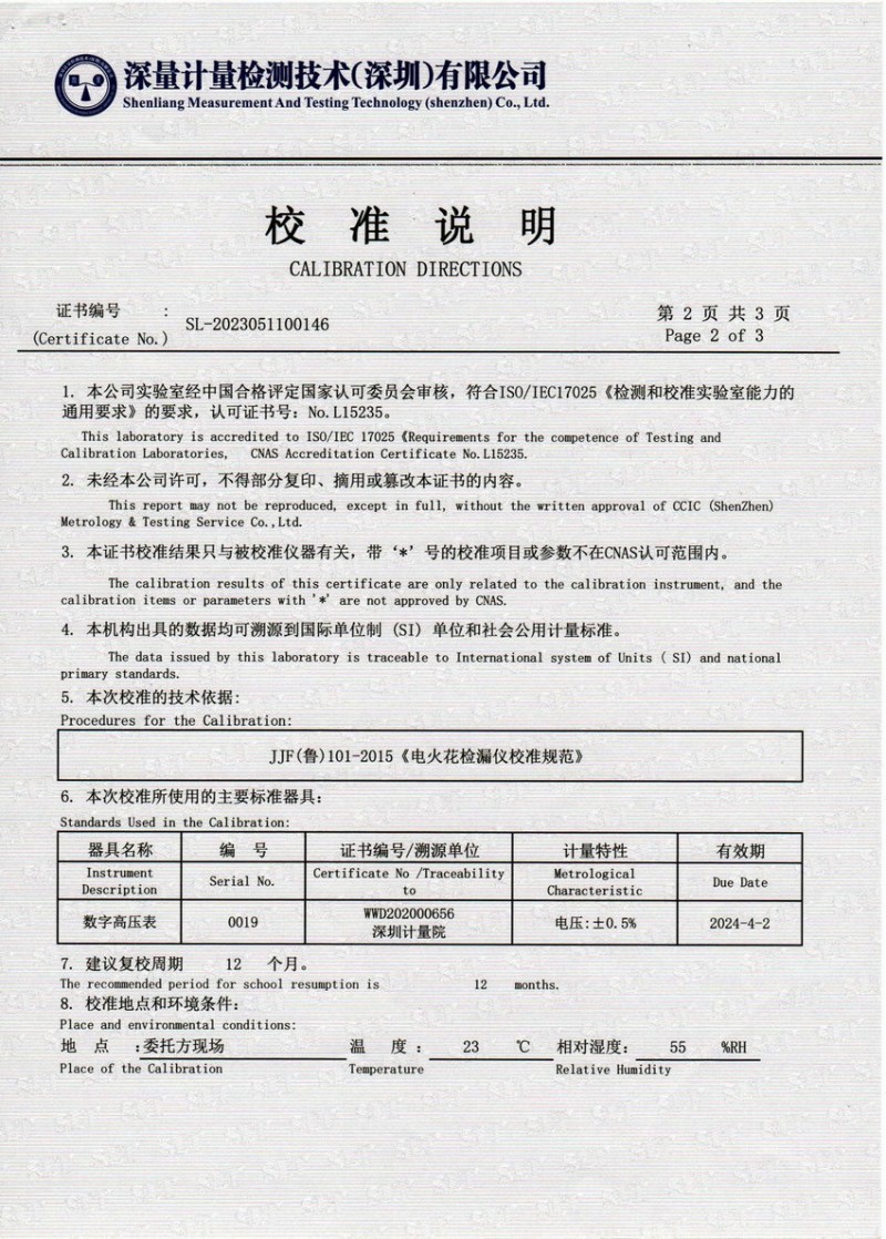 檢測儀器報(bào)告證書:電火花檢測儀jg-802